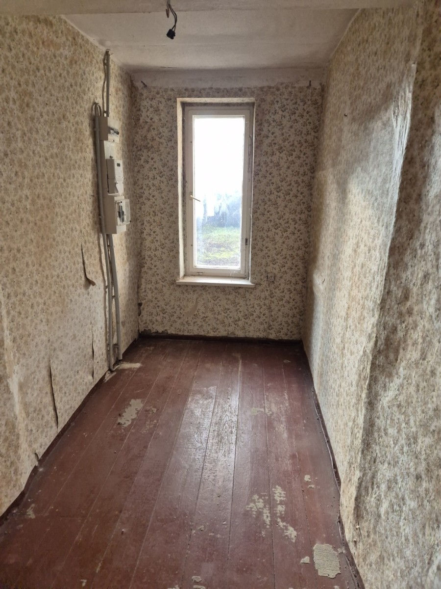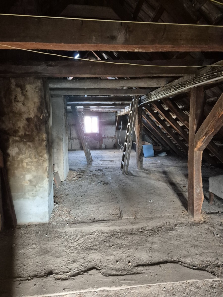 Im Obergeschoss wurden bereits notdürftige Maßnahmen wegen eines Wasserschadens getroffen, sodass der Grundstock vorhanden ist, um mit neuem Leben gefüllt zu werden. Drei Zimmer bieten hier vielseitige Möglichkeiten – als Schlaf-, Arbeits- oder Gästezimmer sowie Platz für kreative Nutzungen. Durch die Dachgaube wurde zusätzlicher Stauraum geschaffen und Licht ins Dachgeschoss geholt, was das Raumgefühl zusätzlich erweitert.