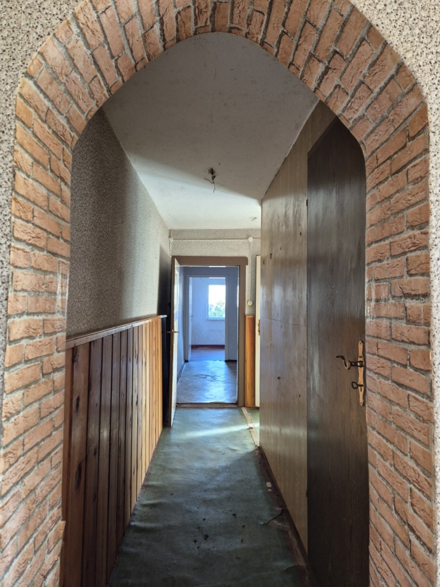 Zusätzlich lässt sich der Wohnraum flexibel erweitern: Ein separater Eingang ermöglicht die Schaffung eines zusätzlichen Wohnbereichs, ideal für Gäste, eine weitere Generation oder eine kleine, harmonische Wohngemeinschaft. In diesem Bereich des Hauses befand sich der ehemalige Konsum mit seiner noch vorhandenen Gewölbedecke und bietet kreative Nutzungsoptionen und inspiriert zu individuellen Gestaltungsideen. Der nicht ausgebaute Dachboden eröffnet ebenfalls vielfältige, persönliche Gestaltungsmöglichkeiten.