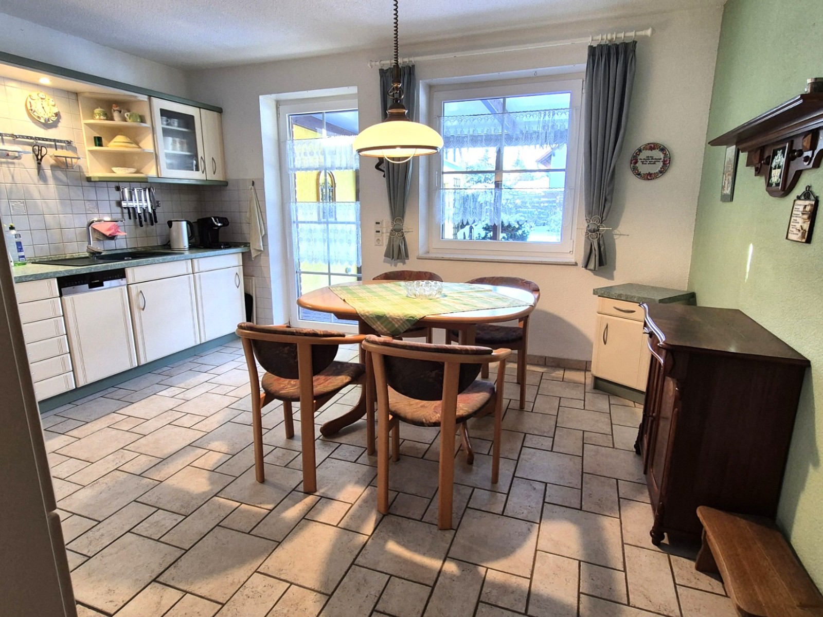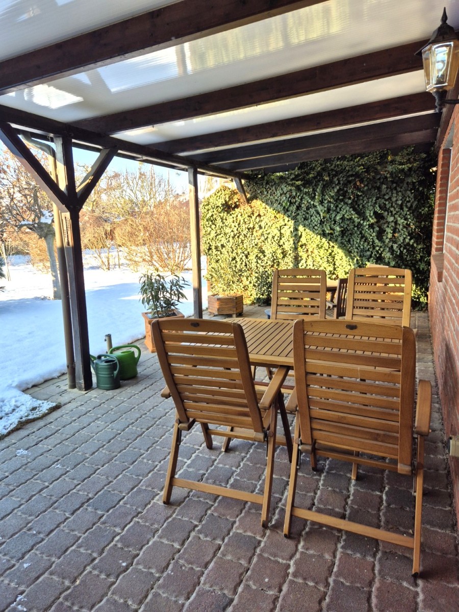 Im Erdgeschoss finden Sie eine gut geschnittene Einheit mit Küche, Bad und vier weiteren Räumen. Über eine Veranda gelangen Sie direkt vom Inneren zum Hof – eine praktische Lösung für Empfang, Wäsche oder den unkomplizierten Zugang nach draußen. Die vorhandene Küche spart Zeit und Kosten. Das im Jahr 2025 liebevoll erneuerte und modernisierte Duschbad lädt zum Wohlfühlen ein.