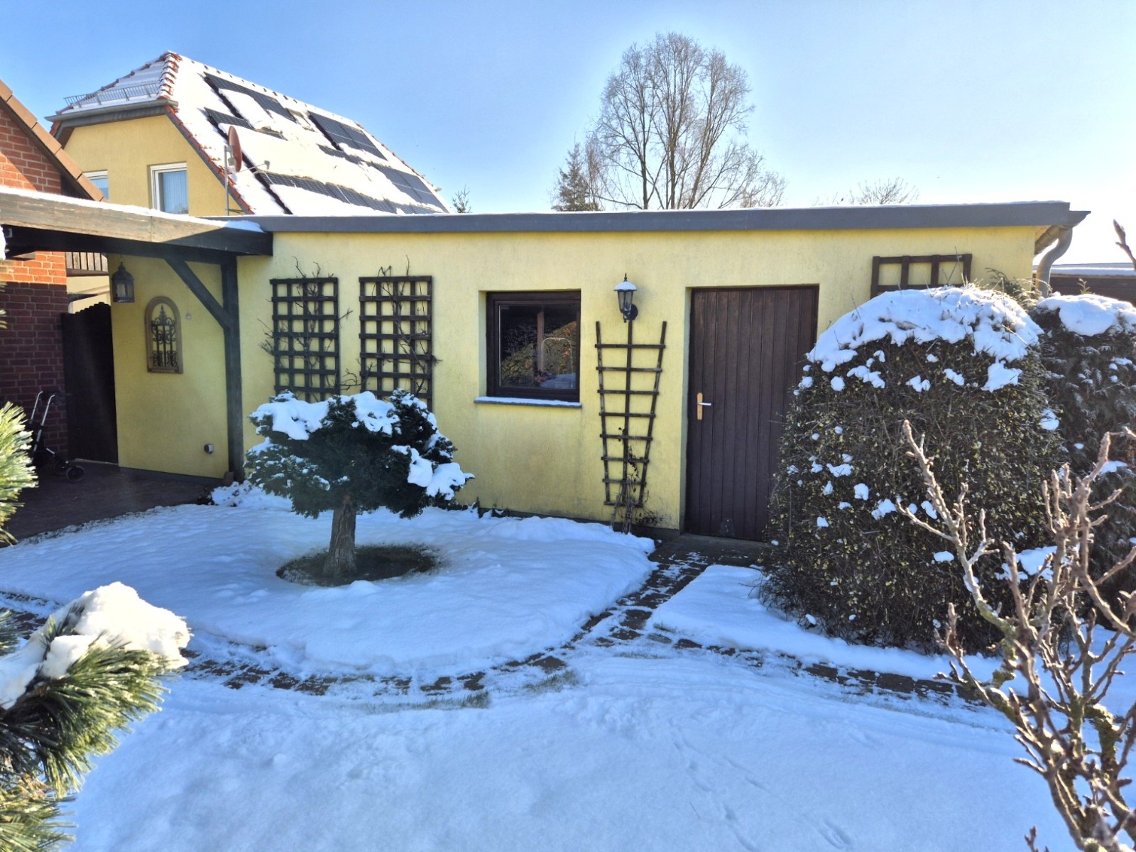 Der Carport bietet eine bequeme Abstellmöglichkeit, eingerahmt von einer Zaunanlage mit integriertem automatischen Tor, das für zusätzliche Privatsphäre und Sicherheit sorgt. Baurechtlich ist der Carport im Baulastenverzeichnis verankert. Die Lage des Grundstücks verleiht dem Objekt historischen Charme und Flair. Das Gesamtkonzept überzeugt durch stilvolles Car- und Gartenbild, das integriert, gepflegt und hochwertig wirkt.